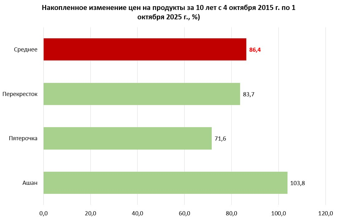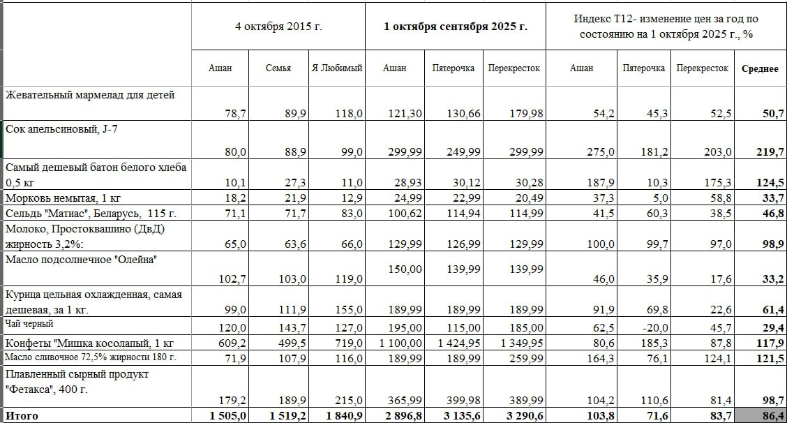 1-го октября 2025 года исполнилось ровно 10 лет самому первому индексу инфляции, который ведёт Александр Абрамов, профессор РАНХиГС. В индекс входят 12 популярных продуктов из трёх московских супермаркетов.
